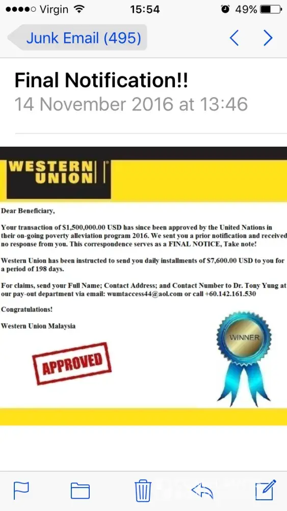 do not trust western union