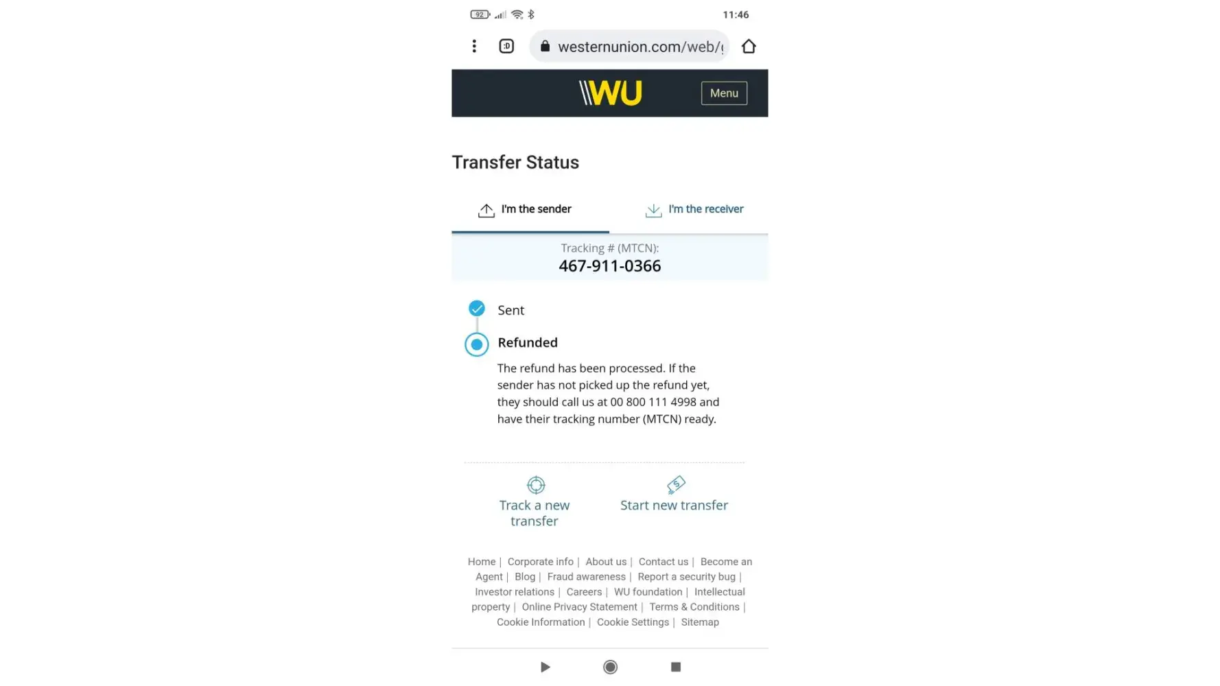 At the WU SBB odfice they told me at the end, that there is a refuse on my name for sending money.