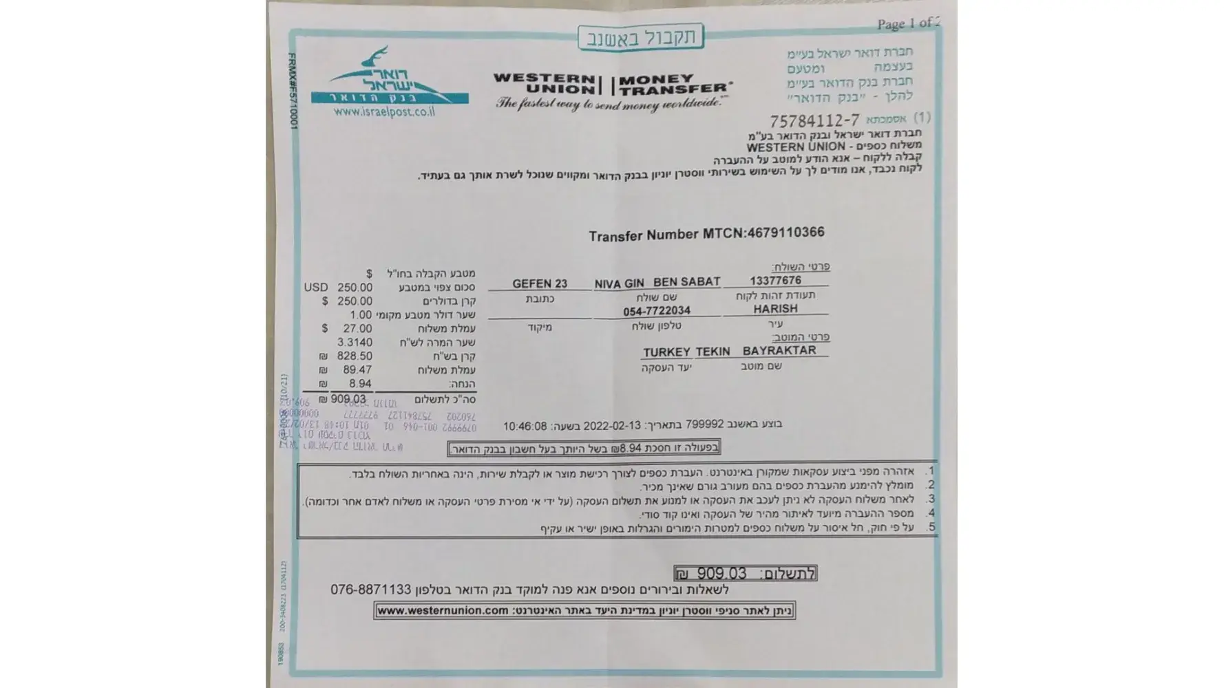 I have already forwarded the email from the bank to the western union as well.