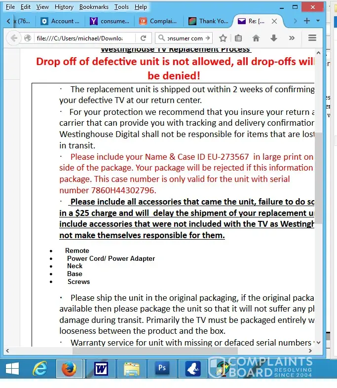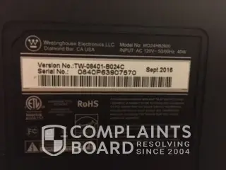 But shipping from Virginia to California was not cost effective. Next Westinghouse said take it to a salvage yard & provide them with pictures, which I did. Westinghouse said I would receive a refund within 20 working days. This has been on going sense last November!