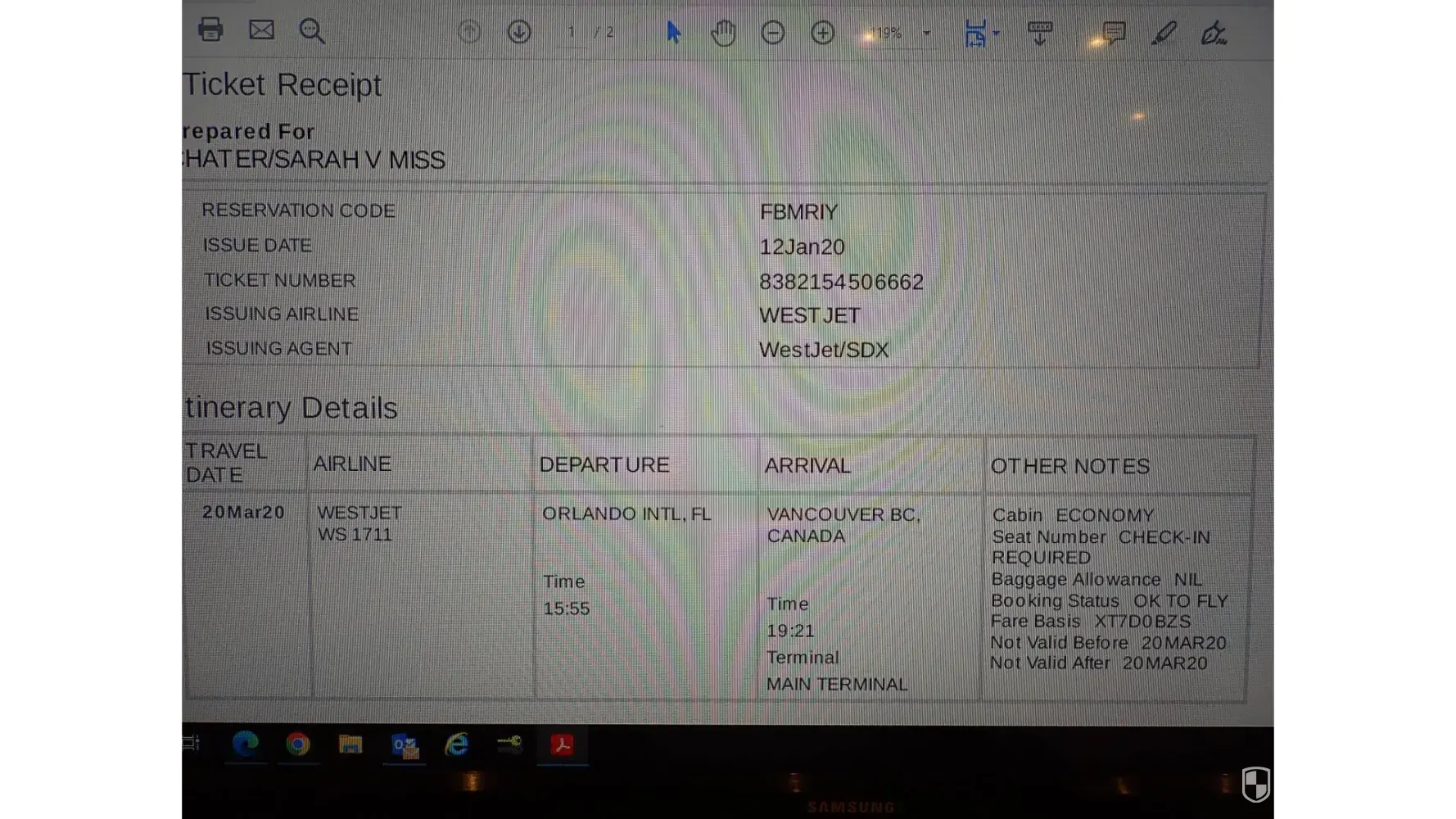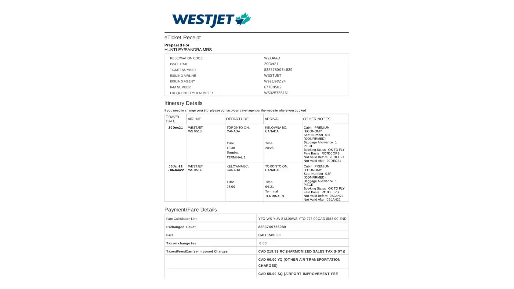 Westjet reservation ZXQJTV Apr. 21, 2022