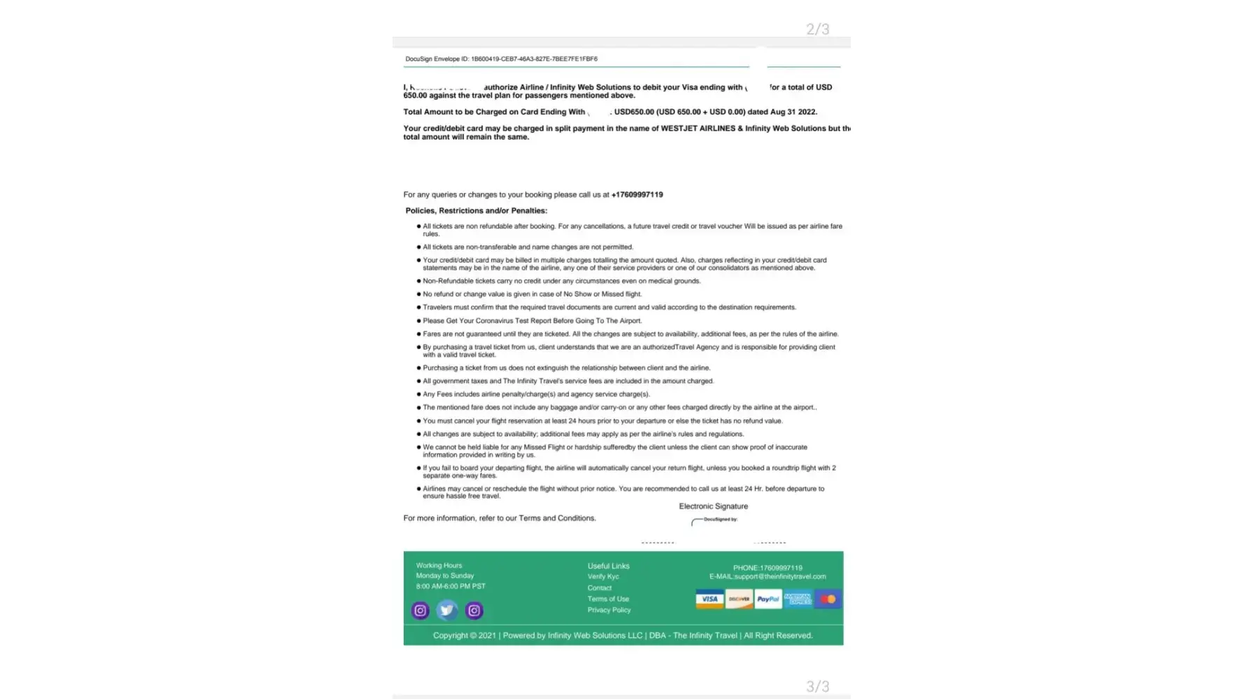 Email sent to Westjet: Sept. 23, 2022