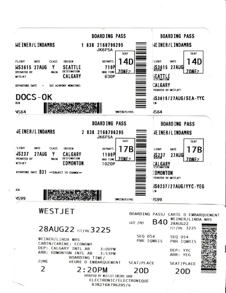 On August 27, 2022 we flew from Sacramento Ca to Seattle Wa connecting to Calgary and then Edmonton.