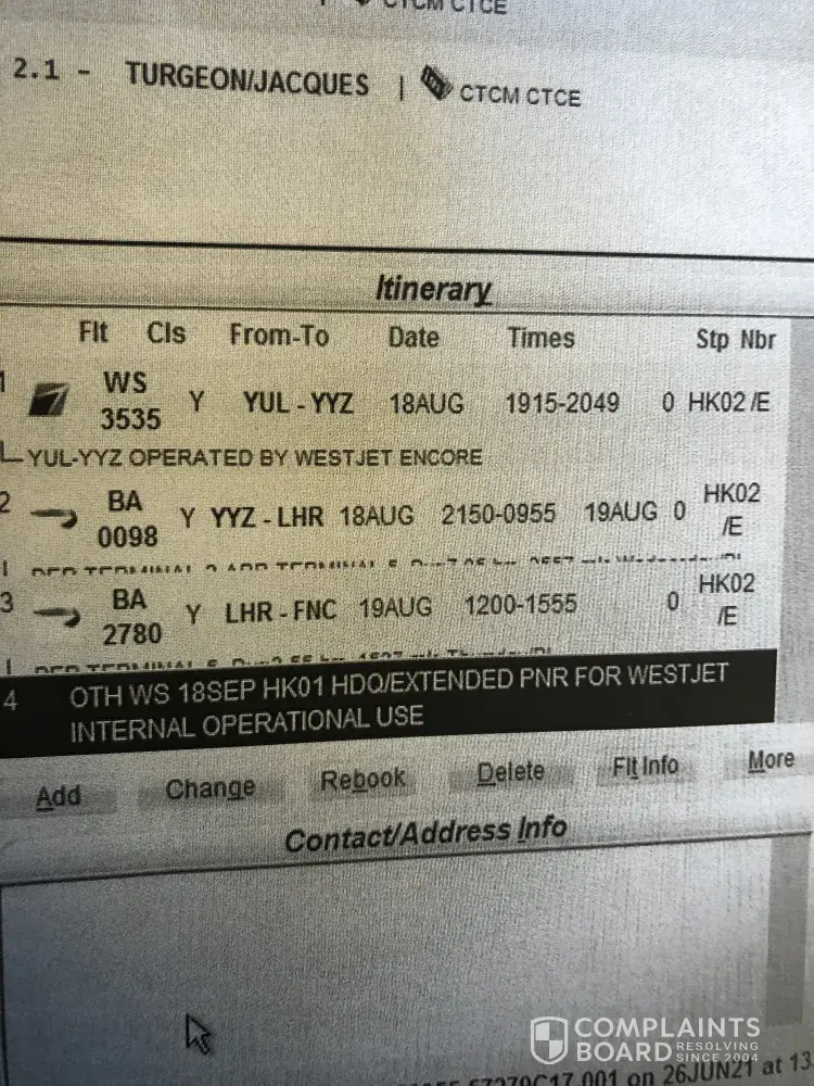 We have tried to contact Westjet to resolve this issue for the past 3 weeks without success as follows: