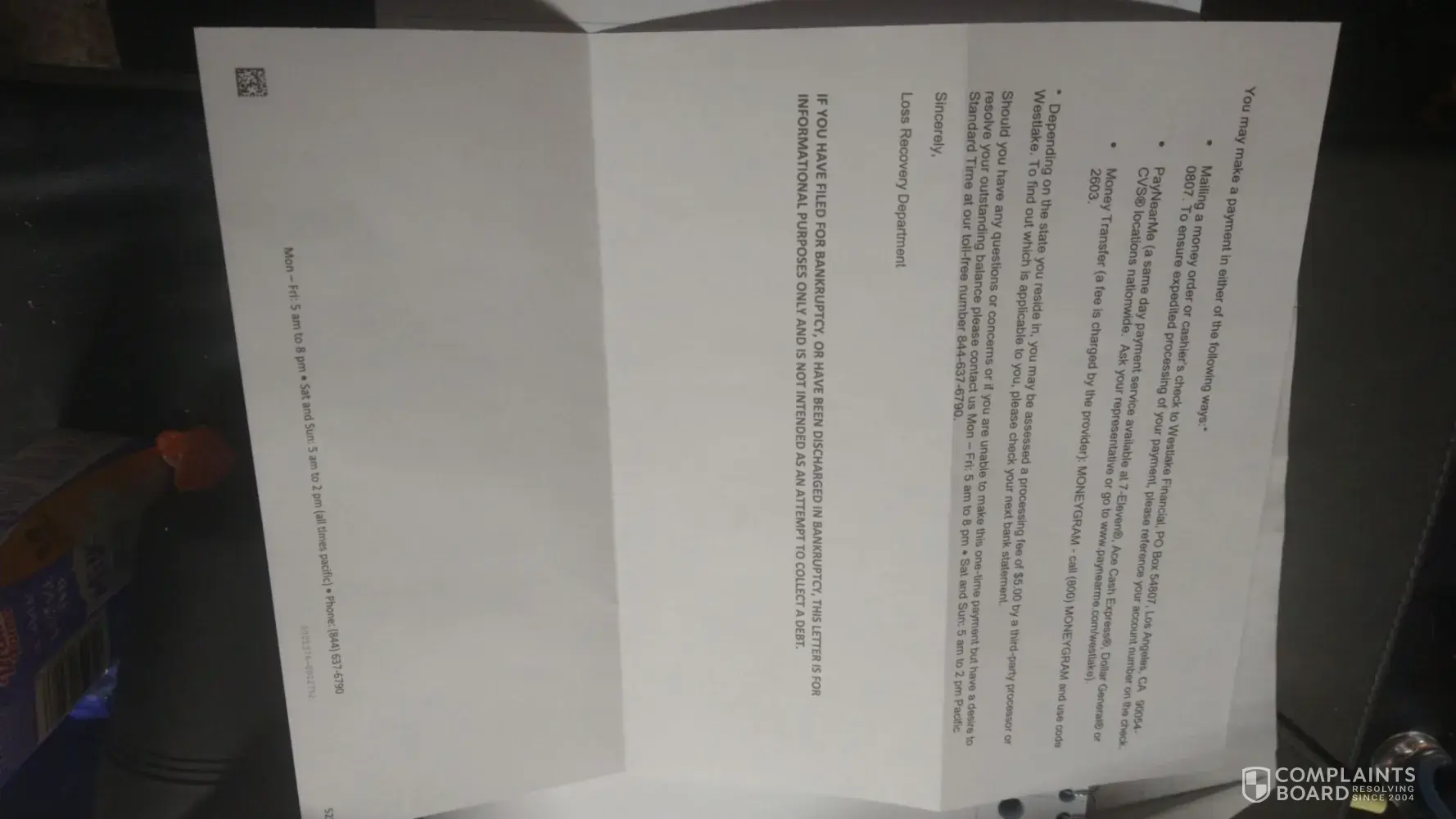 - Westlake Financial Services's complaint resolution process is inadequate and ineffective. The support team lacks customer service skills, training, and resources, resulting in only 13% of 6 complaints being resolved.