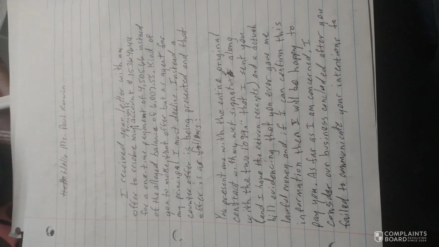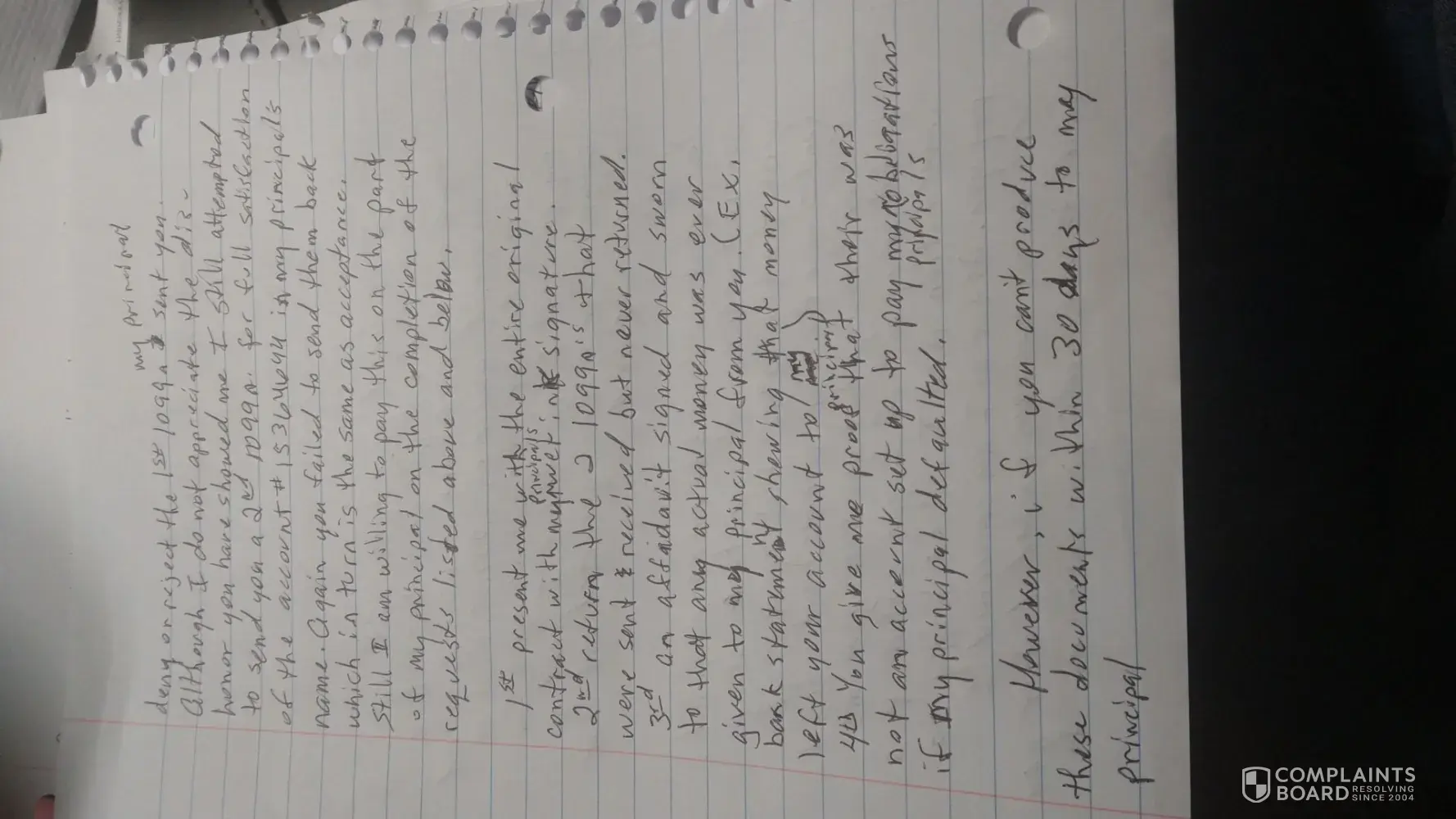 To start, 350 ch. Is not enough. Now my principal sent two negotiable instruments to satisfy this unverified alleged debt in full and they were never returned. That is the same as acceptance. I have the return receipts and on behalf of my principal I am presenting notice for the immediate issuance of all considerations, interest for acct. [protected].