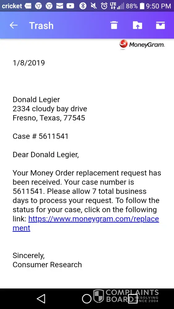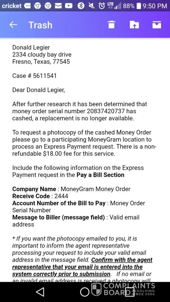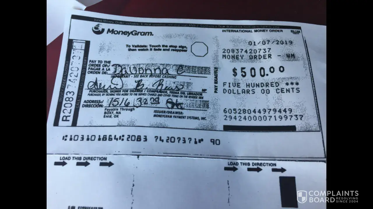 I went to whataburger get up to use the restroom came back to the table and my $500 dollar money order was missing. I asked the whataburger employee if she saw my money order. She said no but she would look at the cameras to see who put the money order up off the table. To make a long story short I ordered a photocopy of the money order to find out that the same whataburger had taken and cashed my $500 dollar money order. Donnie legier donnie. [protected]@yahoo.com