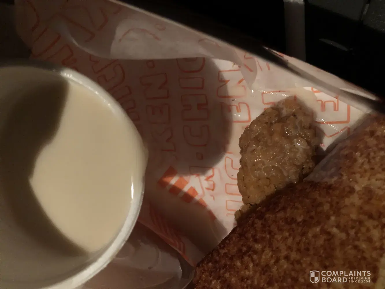 Order number 316524 at 10:53pm. Cashier: Unknown. 3pc chicken and 1 CFT with cheese. I revived my order after waiting 10minutes, for home to find the white gravy is literally just water. Toast is burnt and no cheeses on the taco I paid extra for. This is my first complaint ever bc the service was just Unacceptable . I would Like a refund. I was unable to submit a video .