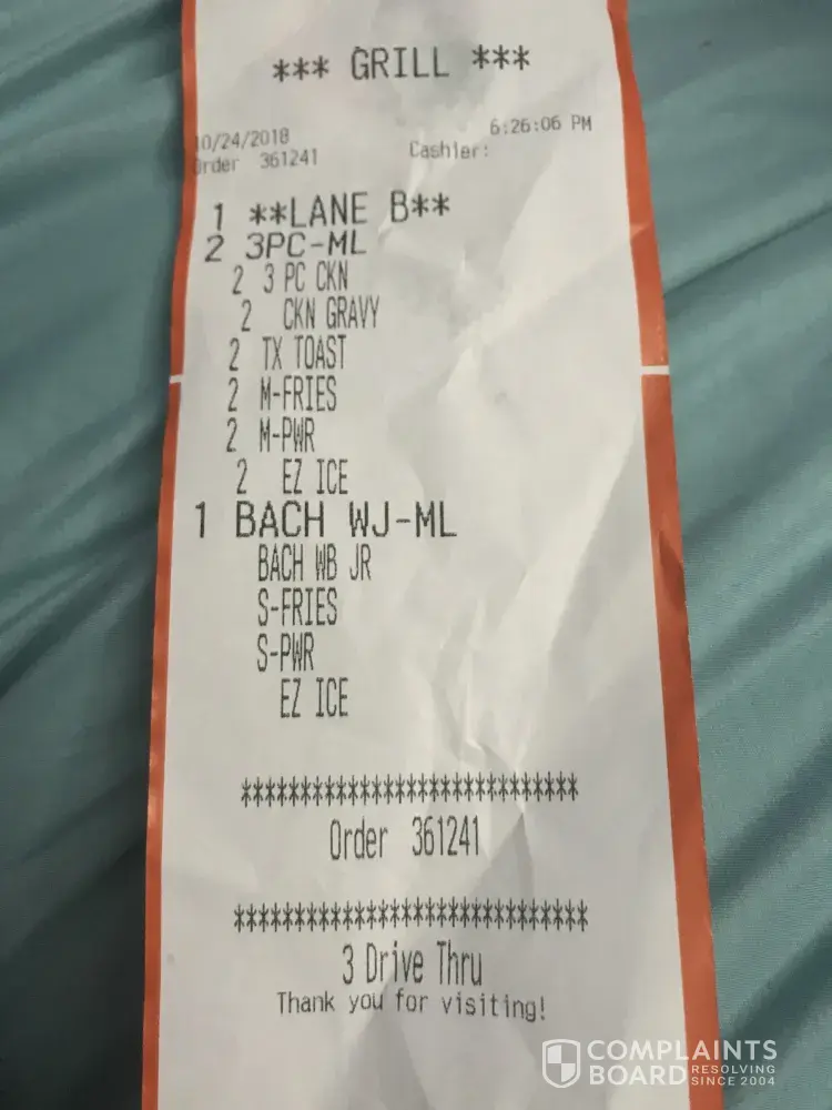 I went to WhataBurger around 6:45am on 10/23/2018. I ordered the #21 with sausage and I add bacon with a large raspberry ice tea usually with no ice most of the time. I come to this WhataBurger very often and order either this or the Patty Melt meal. you can check my transaction. The Cashier Sabrina B is usually at the window most of the mornings that I am there. She's usually pleasant 99% of the time.