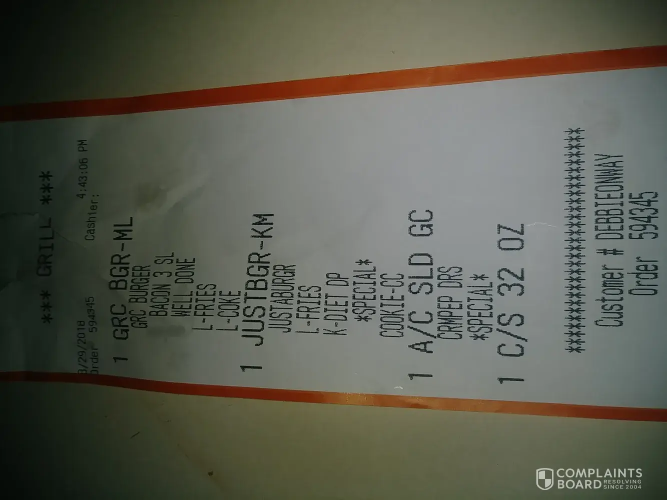 complaint on the person delivering the food out to line 2. 9/15/2018 8:19 pm