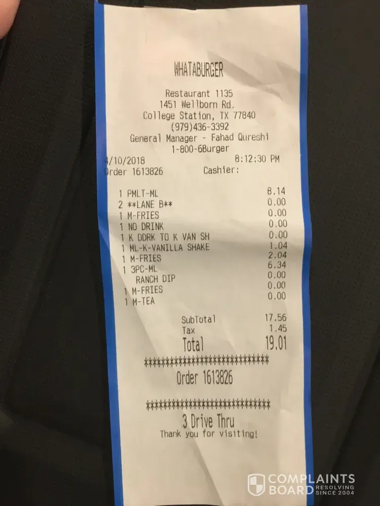 Whataburger Complaints Page 22 of 30