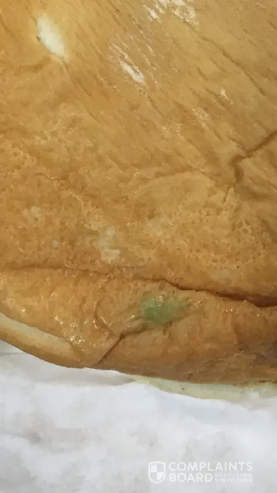 I got a the Whataburger meal, number one on the menu, to go. When I was a about to eat it for lunch 4 hrs later I remove it from the wrap just to find that the bottom bread had spots of mold on. I am attaching pictures as proof.