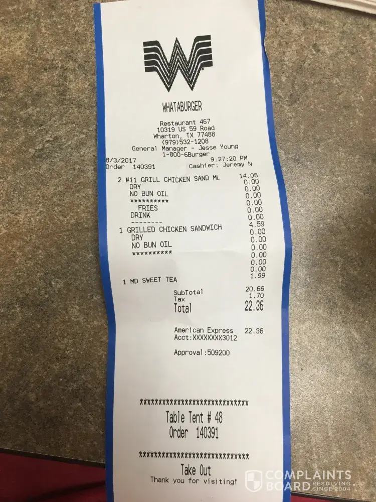 Hello, I a, guessing that this is a chain in texas. There is 1 what a burger here in NJ and everything I have gotten from them was the best I have ever gotten, I hope this place is not connected to the one you guys are having problems with.