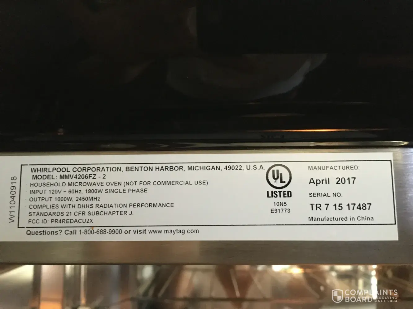 Useless warranty. Defective product. 16 months and the $600 microwave broke. Will never buy Maytag again. They direct me to their service company for diagnostic. Put a cup of water in the microwave for 45 seconds. Magnetron broken has a 10 year warranty - useless. Diagnostic $160 to heat water. Then will be $371 to fix. Buyer beware the warranty that says 10 years is just advertising.