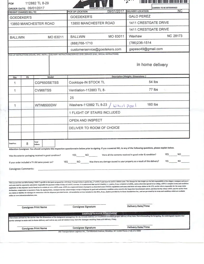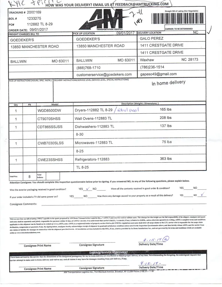 I hope Whirlpool will resolve this issue & deliver my appliances ASAP.