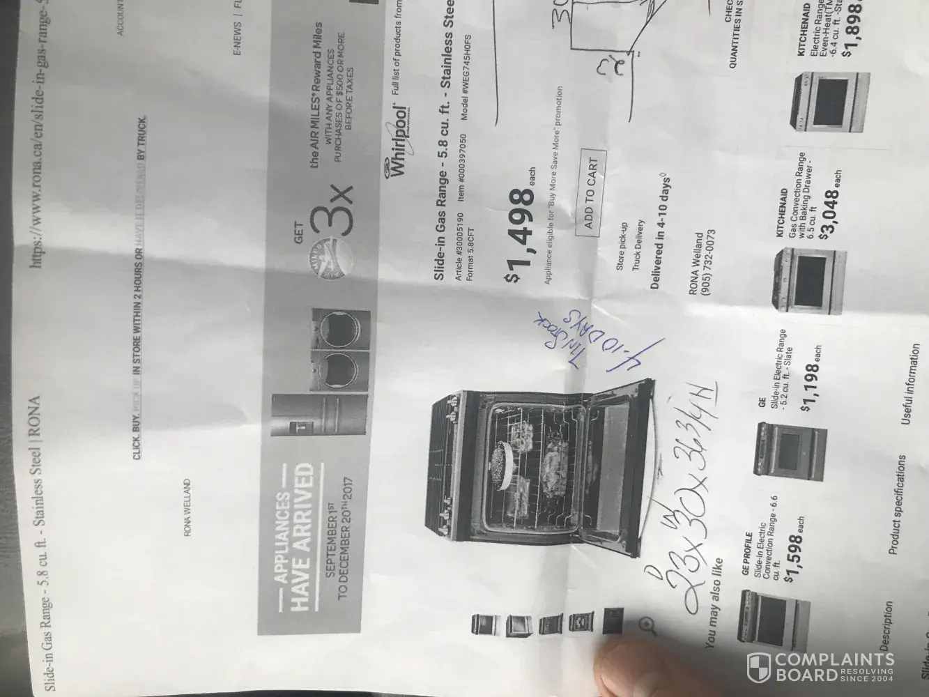 I recently purchased your gas range sliding RONA and I need the slide in range trim kit RONA sent me to Home Depot because it would take seven weeks to come in so it ends up costing me $163.85 plus tax. Now they're charging me $50 to deliver a piece of trim that should've been there with the range. Overall bad experience. I've cancelled buying the fridge and dish washer . At this point I'm gonna go with a different make for the rest of my remodelling.