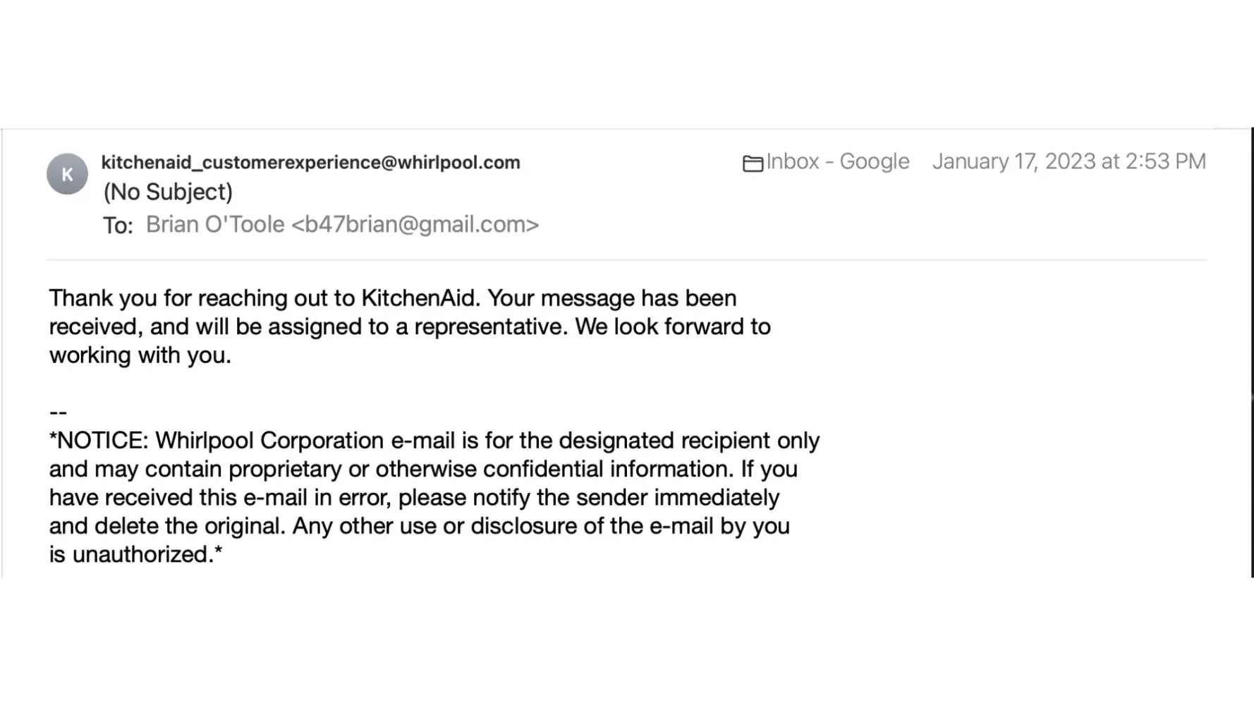 Whirlpool/KitchenAid just lost a lifelong customer over $100. Btw, every other appliance in our home is Whirlpool.