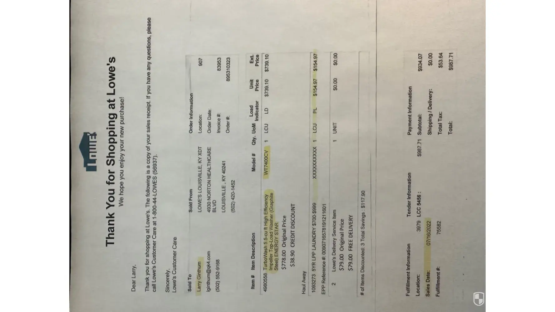We were told by Lowe's that Whirlpool made a good product and they had minimal complaints from customer's on the Whirlpool products they sold. Not true. It's been a costly nightmare for us. Attached are the receipts (2) for the Dryer repairs and the receipt for our new LG washer we bought to replace the Whirlpool washer. Also attached is the original receipt from Lowe's for the Whirlpool washer and dryer. All these repairs are from normal washer and dryer usage. Thank you for anything you can do to remedy this issue.