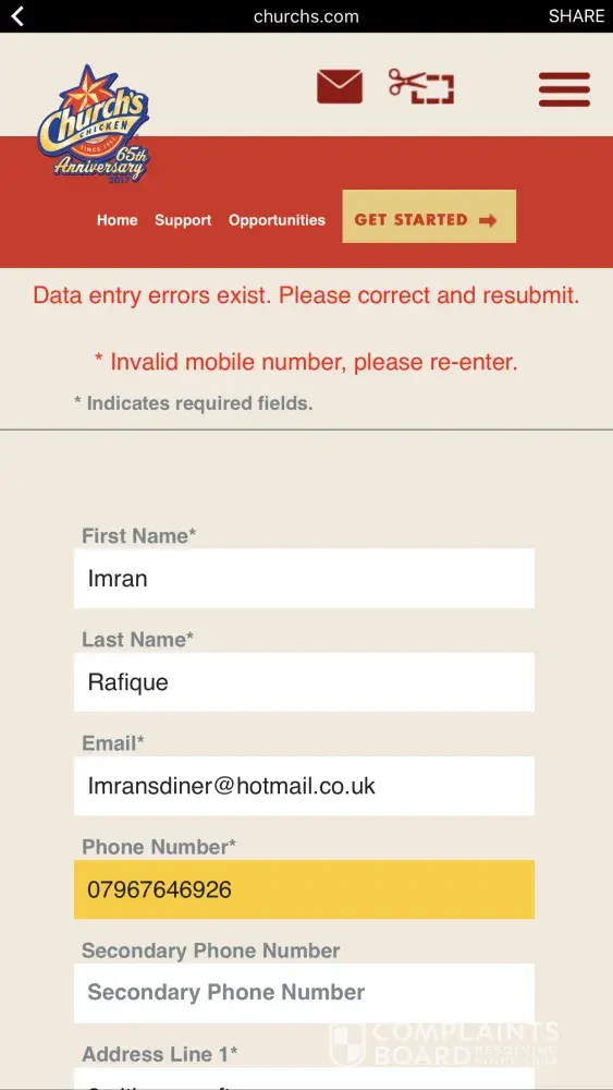 Tried filling form for franchising on website. Got error message! No email contact details available?