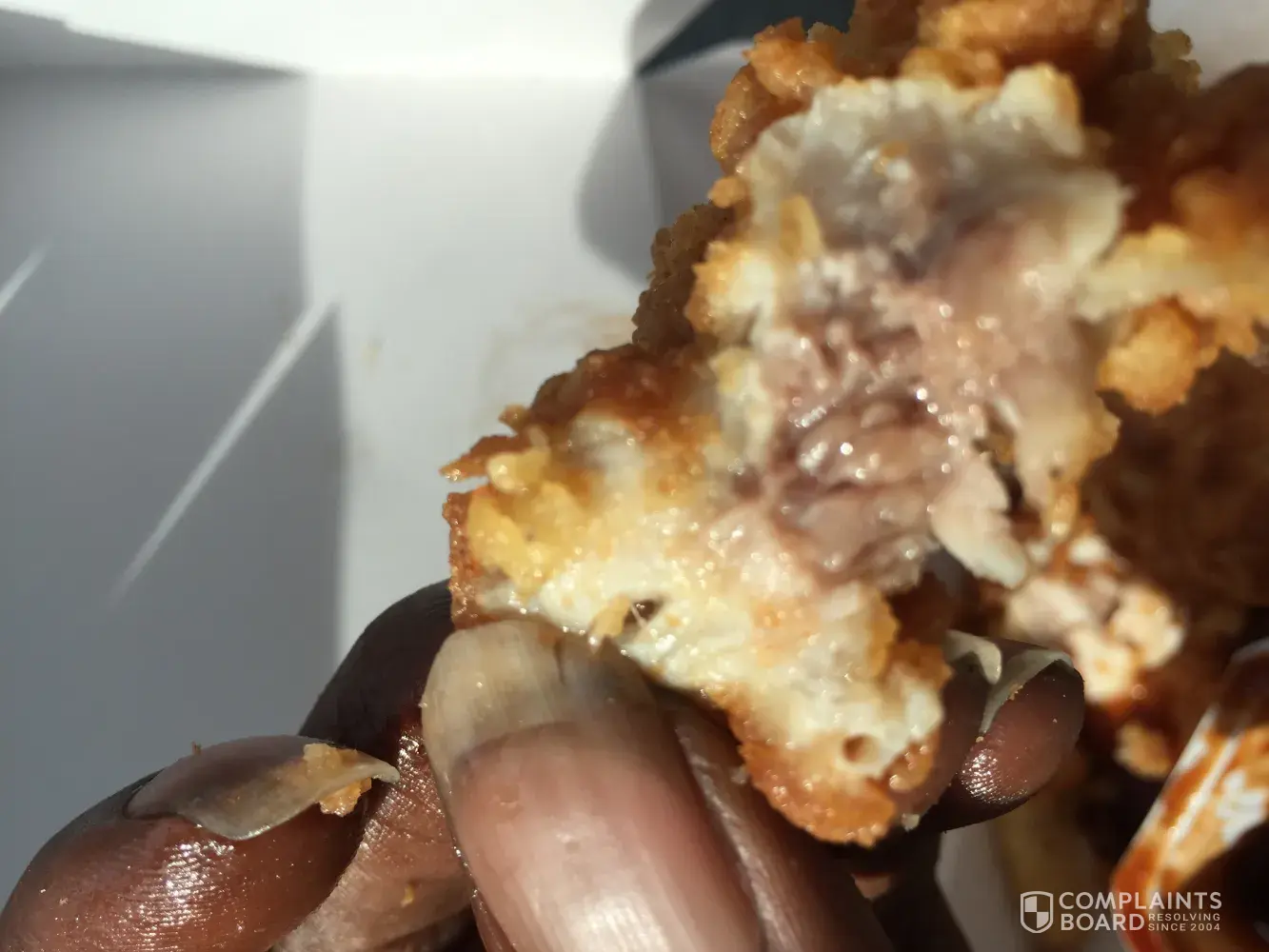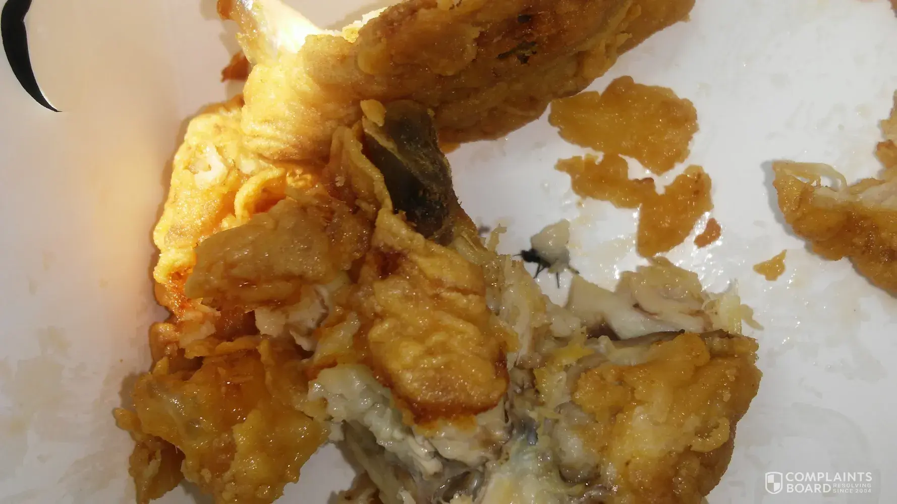 I was eating a piece of chicken and discovered that a fly had been cooked in the chicken and called the place to report it and they didnt wanna believe it...i have pictures