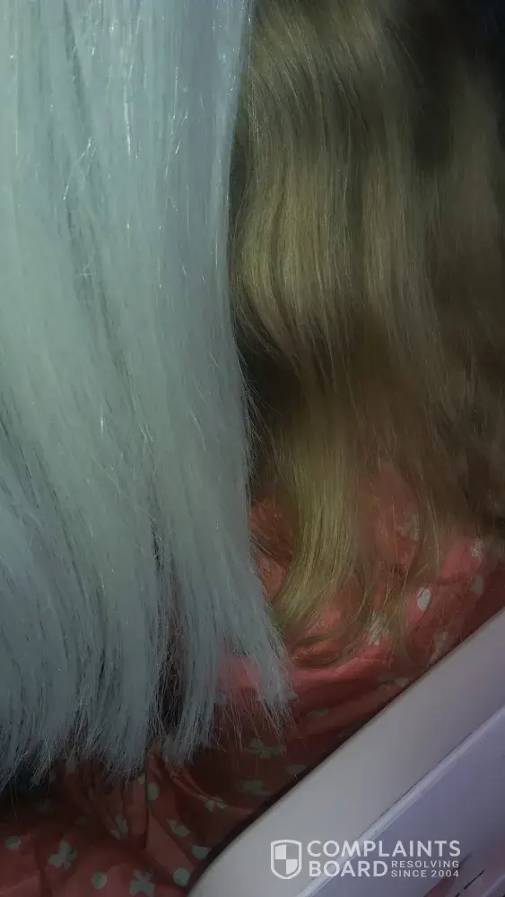 The customer service recieved multiple pictures from me, but they say they don't see that its fake hair... (the blonde hair is from my daughter, white hair is the wig)