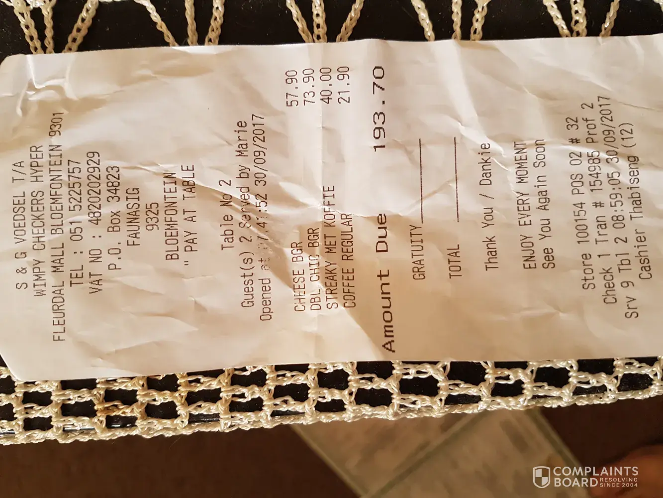 We went to wimpy mtuba yesterday and I have the following complaints.