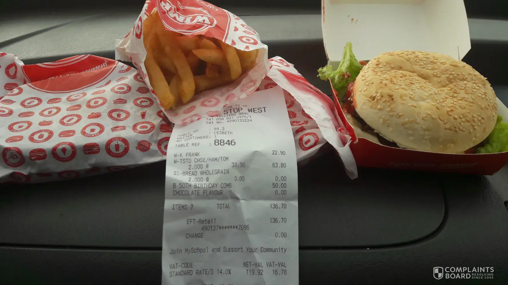 I am really disappointed that we drove four hours from Johannesburg to have that kind of service, his birthday was the 21st and that was the reason for the weekend getaway and it was his first time at Wimpy - it is extremely disappointing. Your brand has lost 4 customers due to the bad service from the manager and the failure to rectify a problem in the kitchen.