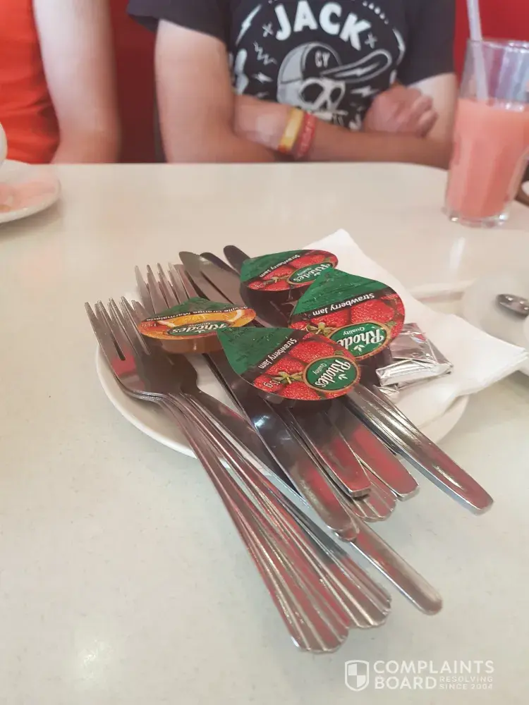 We received our cutlery thrown on a plate, not even enough for the whole table, not wrapped in the serviettes.