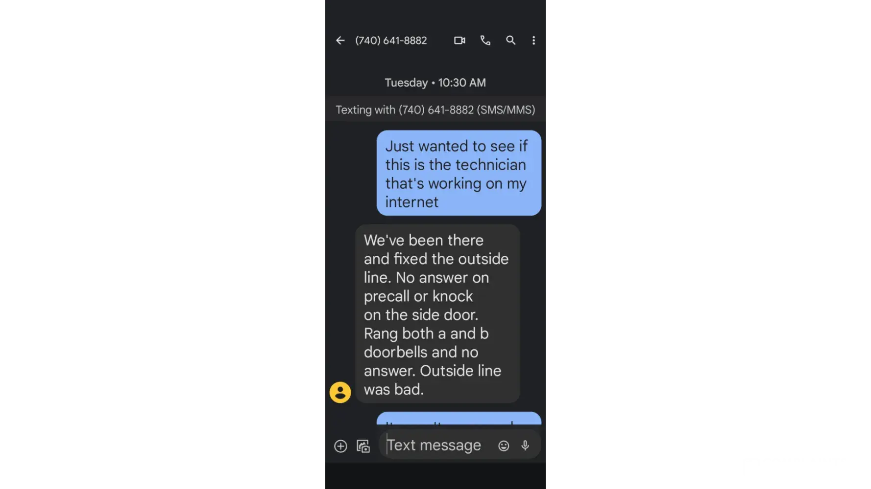 Desired outcome: I want new wiring coming to my house so that I don't have to use my cell phone data to do my job and I want my security cameras to work.