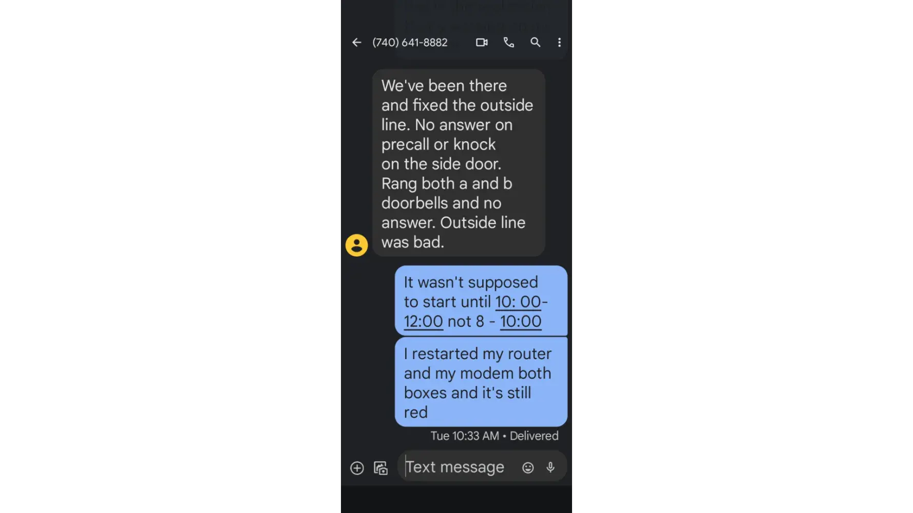 They will have a technician out here to set up my internet. I live in the old historic house that they converted into a duplex and theres a lady that lives upstairs and I have the whole downstairs, it's made into two houses/ apartments. She actually has internet through Wyndham and that's how I figured who I would get my Internet through. So on the 14th of November I had a technician show up and he was here for a couple hours at least and he said he wasn't getting a good signal coming from the pole to my house. Hes going to try a couple other things and try to figure it out and if not hed have to put a ticket in and somebody would be out Monday or Tuesday and that was a Friday. All the while I'm on the phone with my mom, sister-in-law and my family, my brother went to the hospital overnight and was about to go through surgery and it wasn't looking good. So honestly getting the internet installed that day was not a big priority. I was more worried about my brother and his well-being going through surgery. So finally the technician said he could do no more and he just had to put in a ticket and I asked about my neighbor because she has internet he said well yeah whoever ran hers ran up through the trees and I'm not doing that so I'm just going to get somebody to come out here and fix this pole and do whatever to get it up and running again.. so again that was November 14th and I waited another week maybe a week and a half. I work out of town alot and if I'm not out of town I'm in town working. I work two jobs so the first chance I got I called customer service and asked him about my service and when they going to get it hooked up, they transfer me over to another department and could not understand the guy but i told him look I'm going through some stuff, I really need to get my internet running and he said we'll send a text to you or we will call you and we'll let you know when we're going to get out there he said don't worry about it. My brother unfortunately passed away that Saturday, the day after the technician was here and I've been dealing with that and not having any internet, no tv, I can't get my security cameras working etc.. so on top of all that, I call when I'm back saying listen I need to get my internet going what is going on why can't we run it to that other pole that my neighbor has it on and she literally lives in the same building. they said we'll get somebody out there, we're going to take care of this today in the meantime I've already received two bills and I had never once had internet. So I spent over 2 hours on the phone with this nice lady, she's going down the checklist, she's making sure everything gets done. She ask me when's a good time for the next day to be here for the technician. I said I'm working late so be early afternoon she said 10 to 12 time slot. I said that's perfect, I get to sleep in a little bit I'll set my alarm I'll make sure I get up and that I did. I set my alarm for 9:30 got up, had me a cup of coffee and I start looking at my phone. I had a missed call, I got an email saying that technician was on his way at 8:30, no she told me it was between 10:00 and 12:00 I looked at my email and at 8:30 in the morning they changed the time so I was sleeping. I wouldn't have known that anyways. I called the technician back, I called the windstream office back, the rep said call the technician back and see if he answers again. I did that. he did not answer so I text him and he finally sent one text back that said we knocked, we rang your doorbell and you wasn't there, said the pole outside needed fixed it it's done. And during this whole morning I'm looking for this guy out on a pole, in my backyard and did not see him not once,I waited for him to at least try to come up to the house and make sure that he got a good signal coming from the pole to my house and be never even checked that. I called him again he sent me the voicemail on the second ring and never heard from him again. So I called back the home office and we opened up more tickets lol I don't know how many tickets I've opened up at this point but it's getting ridiculous and I'm real frustrated at that point. Now here it is over a month and a half still no internet, still no follow up, not one person has called me from that office that I've called, that I sent messages to, I have the modem here from windstream, I have the router from Windstream right here and it does me no good. I don't know what kind of business they're running over there, in the world I live in you earn your money and you keep your word. I don't know if this email will find the right person or not. I'm going to copy and paste this to corporate office and to the home office and whoever else I need to send it to because this is absolutely ridiculous and it's not fair. I'm still mourning the death of my brother, my best friend,I can't watch TV, I can't even have that extra layer of security without my security cameras because I can't use them without internet. At this point this internet company is a joke, not one person has kept their word, and last time I called l,I was even told a manager named Eric was going to call me right back never heard anything from Eric or any other supervisor, field supervisor or even anybody that opened up any of those million tickets. I still have no internet and I just need to know if they're going to fix it or not. Well thank you for your time I appreciate it and taking the time to read this. I have to get ready for the Ohio State game now but I can't watch it here because I have no internet smh Go Bucks!