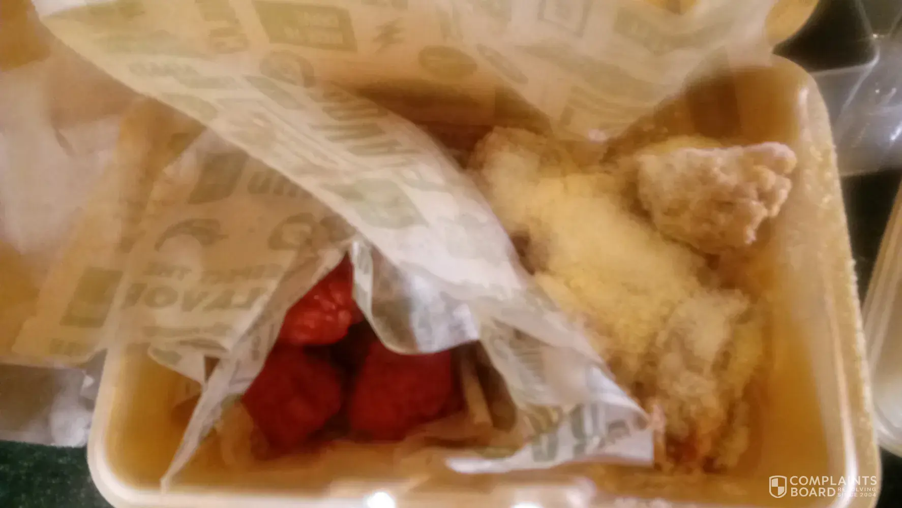When we arrived home, the bag was all wet and the sauces had came out. The person who packed the wings had put them upside down.