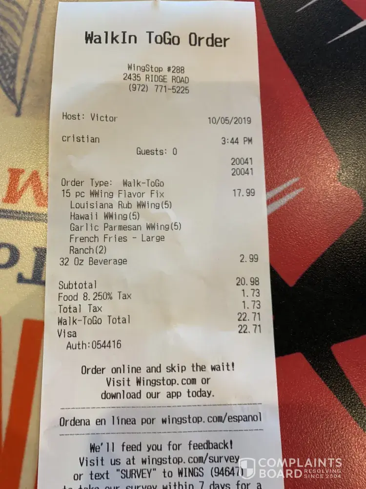 "We apologize if you were not satisfied with the customer service you received at this location. At Wingstop, our guests are our number one priority and we are committed to providing the highest quality customer care.".