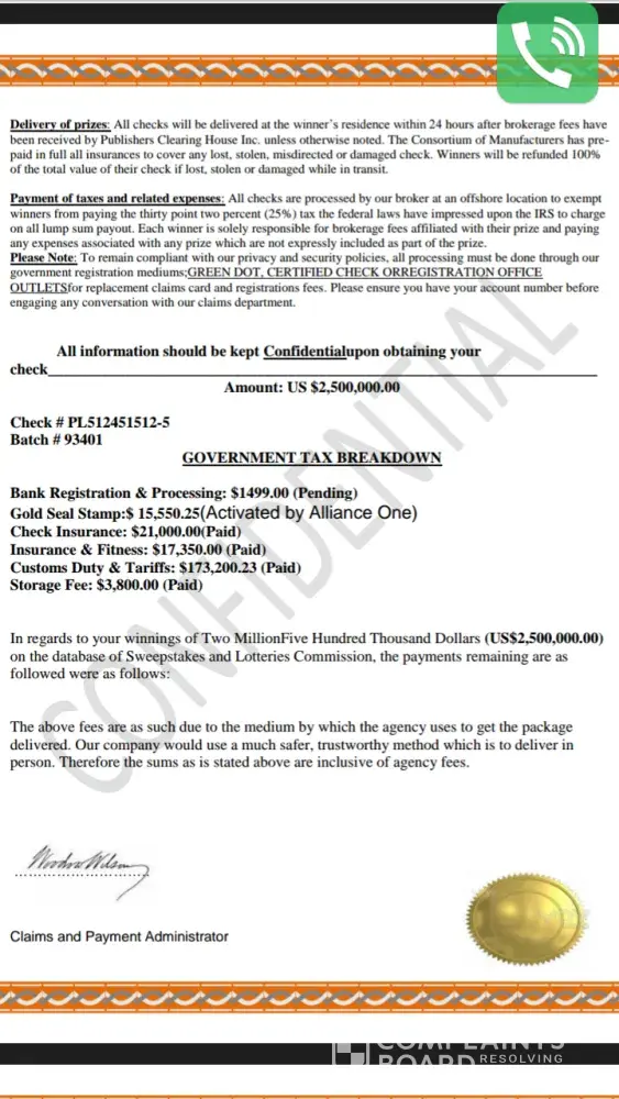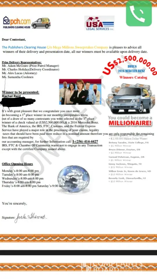 Read full complaint and 26 commentsyou won 3.5 million dollars! oh did I forget 2 mention all the strings attached? scam