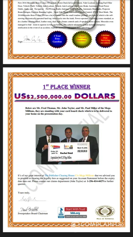 Read full complaint and 18 commentsB.S. sweepstakes