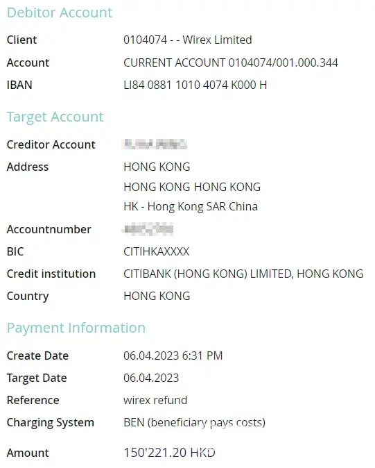 After contacting my bank, they informed me that they haven't received any remittance transfer from Wirex Limited to my bank account.