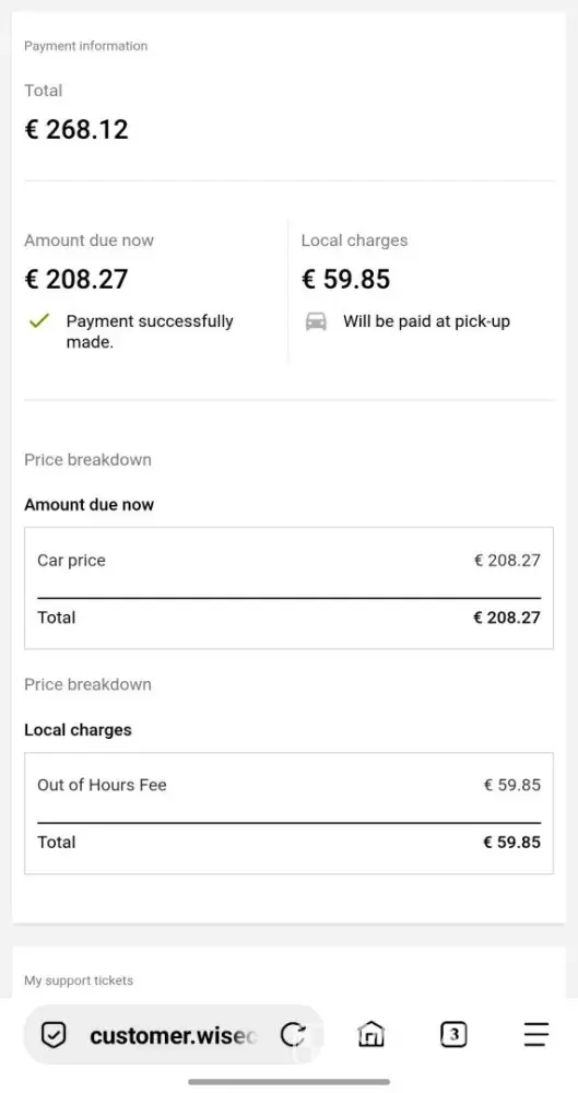 I then tried to get a refund from wisecars for the original booking which was refused. I tried to do a chargeback with my credit card provider and wisecars lied to them to avoid the chargeback.