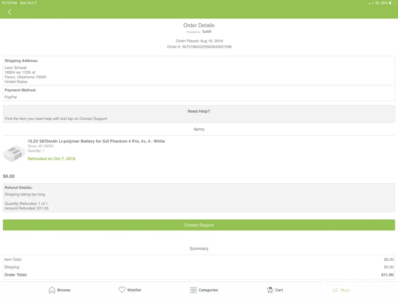 I have not received this item i purchased. I would like a refund. I've asked several times and the app doesn't appear to show the item I'm requesting to show in the ordered history in my selection. I placed this order on August 23, 2018 and I was told by your app that it had already been delivered on September 24, 2018. That's not true! I want my item or a full REFUND!