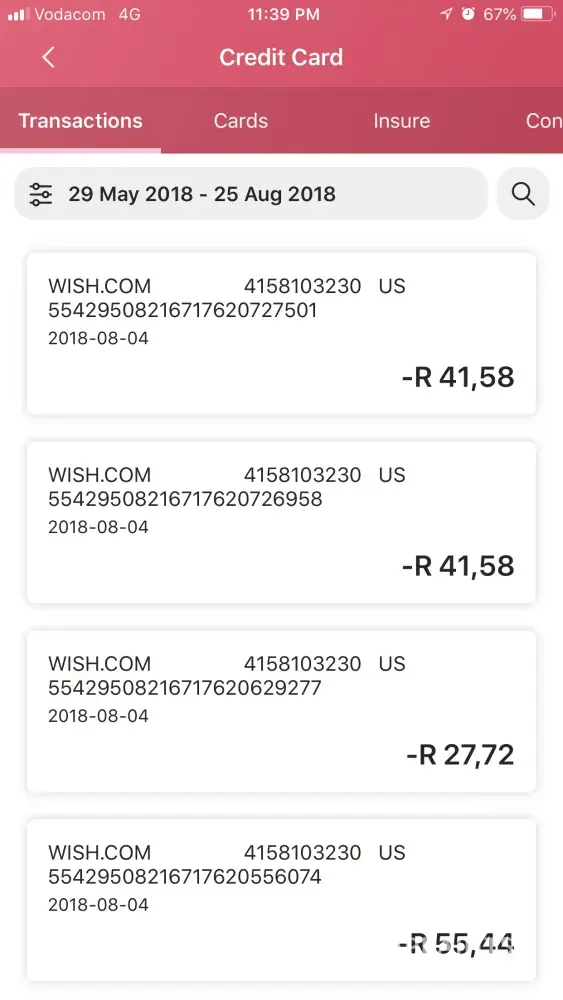 Wish was purchased of amount $164.00 on may 3, 2018 and march 2 2018 amount I forgot it goes back to February 2, 2018i am homeless need my credit back I have nothing and im hungry and need to pay a bill. Please refund me my credit back I think I deserve it my po packages never came business fedex OK ved and never received packages or refund can j get my refund now I've been wanting it and waiting for the longest card ik still have
