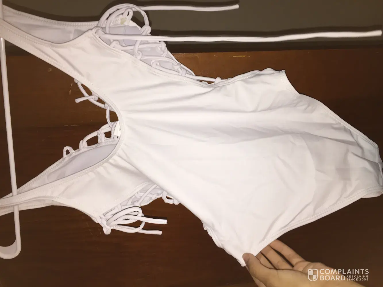 I ordered a white one piece swimsuit in a size small, which didn't fit me even though I am a small in everything else I order, so with that I kindly asked for a refund which I received. Then, with that refund I ordered the same swimsuit but in a bigger size. I got the swimsuit pretty early because I paid for express shipping just to be even more disappointed. It fit fine and I loved it until I realized it was a completely different swimsuit! I ordered it from the same seller and even paid more for it to get it quicker and in return get something that I didn't want. Also everytime I go to contact support about it, the website crashes every time and I can't finish the email I was writing which is very frustrating. The one I wanted didn't have holes in the back and the second one I got does.
