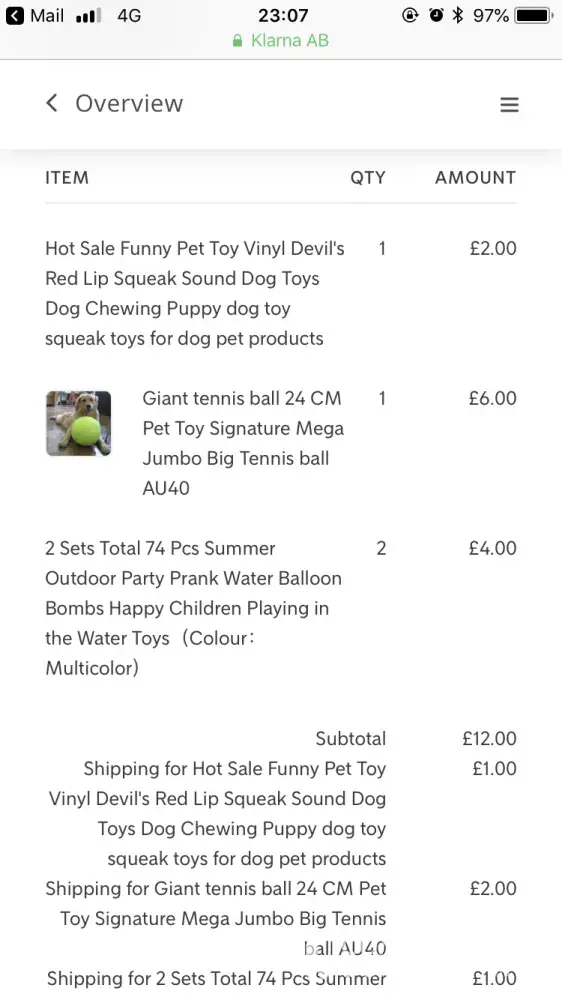 In 2015 I ordered some items which were never received. It has just been brought to my attention that This has incurred a debt and late payment fee on Klarna which has now been passed to a debt collection agency. I've emailed wish 3 times to clear this up but no response. I would like this matter resolved ASAP and wish customer service is an absolute joke! I have enclosed a picture of the items which I'm being charged for but never received