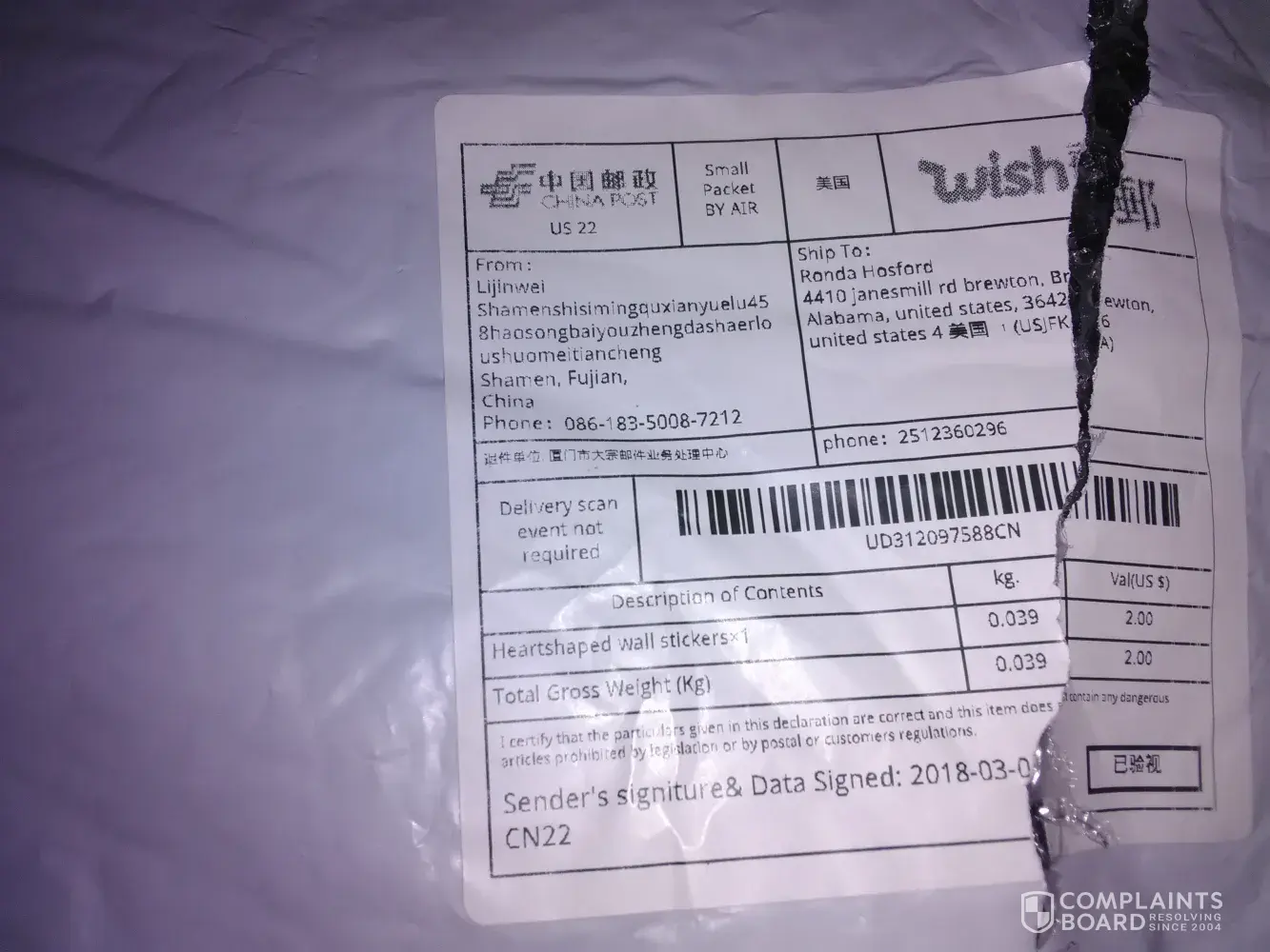 I have been explaining this to wish like one hundred time and not one is listening to me. Both Wish and this customer had ripped me off.