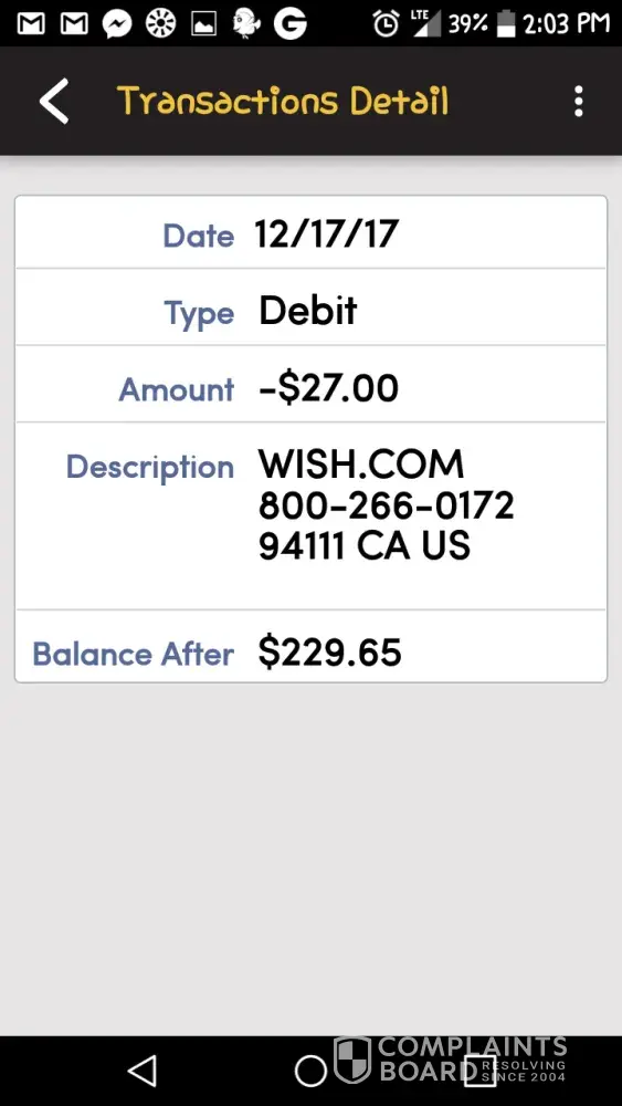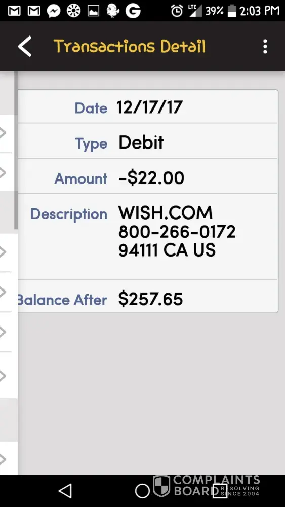 We have reported today to our bank that the Wish organisation has for the past year been taking USD 10.99 per month from our bank. We have not signed into any contract or agreement with them and want to know how it is possible for them to take this money from our account in the U.K.
