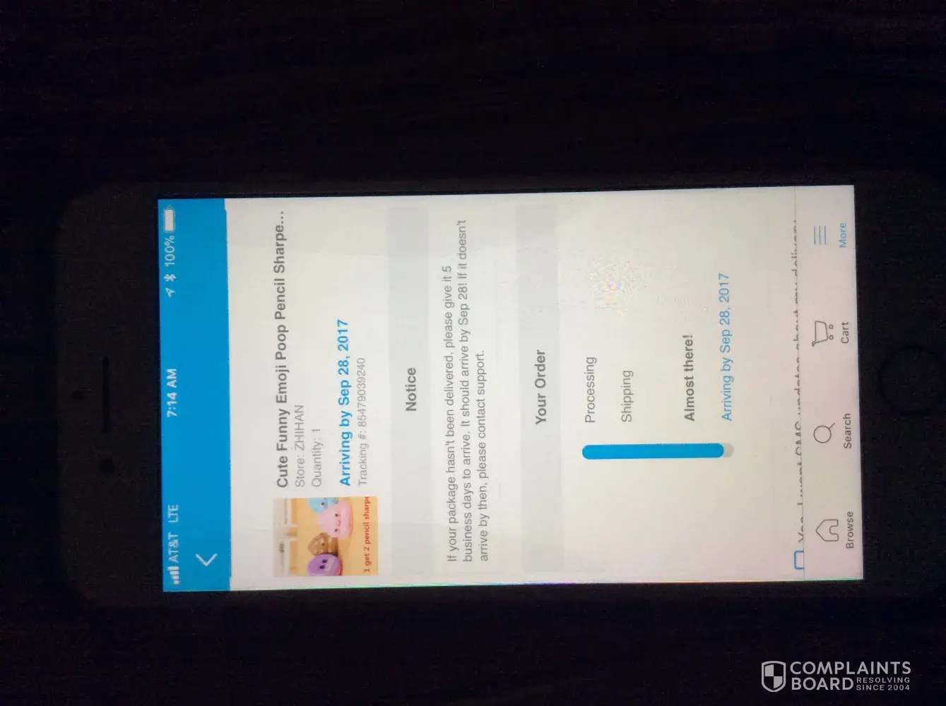 I ordered on Oct 28th 2017. Order was processed on October 29th, 2017. I received an email stating my order was on its way on October 30th, 2017. I starting tracking the package and saw a 'delivery attempt' on November 10th 2017. I then noticed that the ZIP CODE is incorrect on the order. MY Fault. Since November 10th I have been contacting support to tell them why I didn't receive the order and to give them the correct zip code. NO RESPONSE! My purchase was to be delivered no later than November 21st so for 10 days I waited. When November 21st past, the shipping date changed to November 28 which is tomorrow. It will not likely arrive because they have not bothered to read the three communications I have sent through the Wish app. The correct zip code is 60628 by the way.