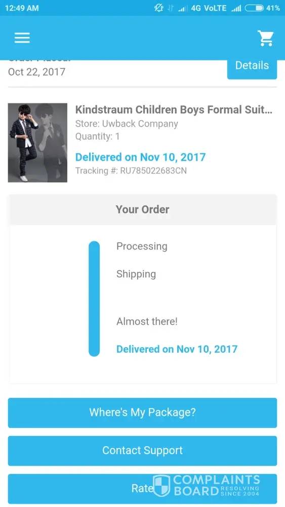 Wish order sent out on november 1, 2017