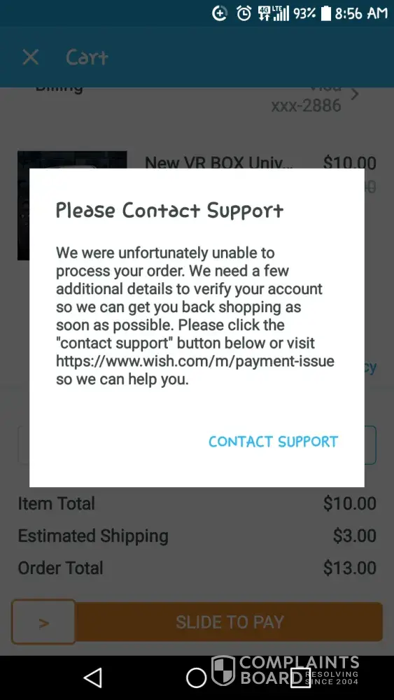 só isso que vocês colocar para mim Obrigado por ter comprado conosco. Infelizmente, a loja não pôde enviar um item do seu pedido. Por favor, visite https://www.wish.com/payment-issue para obter mais informações.ele não funciomar meu carinho esta com 15 intes que eu quero compra não sei o que fazer dede do dia 14/9 da para vocês resolver esperado resposta no meu e-mail. [protected]@hotmail.com estou enviando minha identidade.