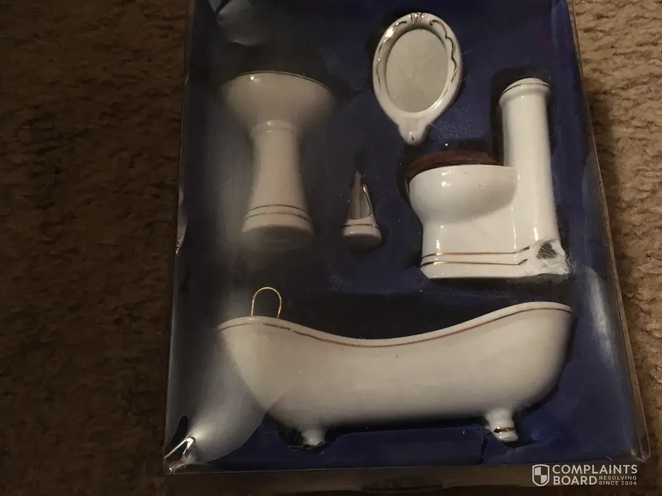 clothes and a broken doll bathroom set.