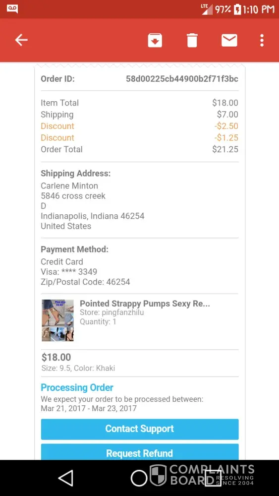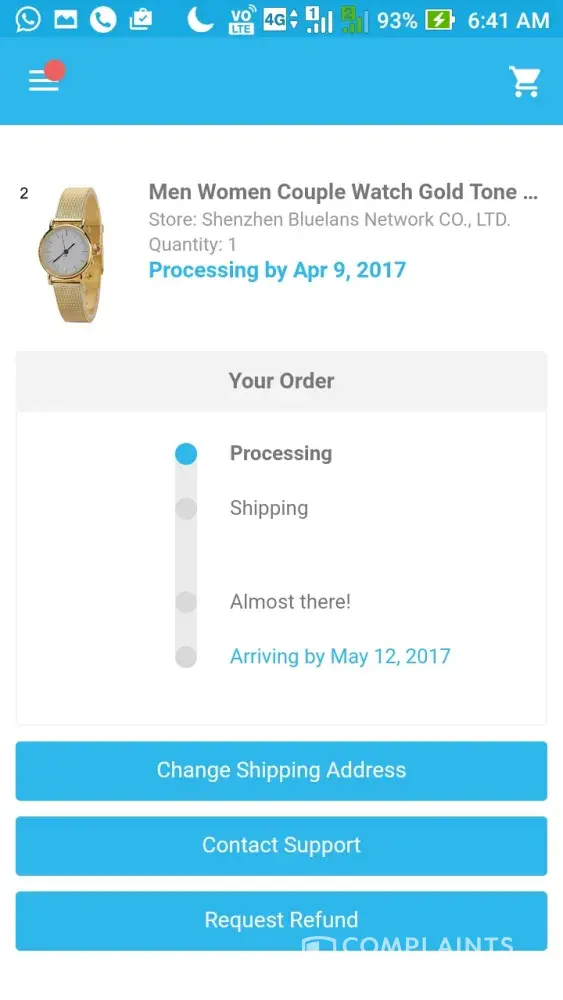 I tried numerous times to put a complaint on the Wish site, but nothing is happening.