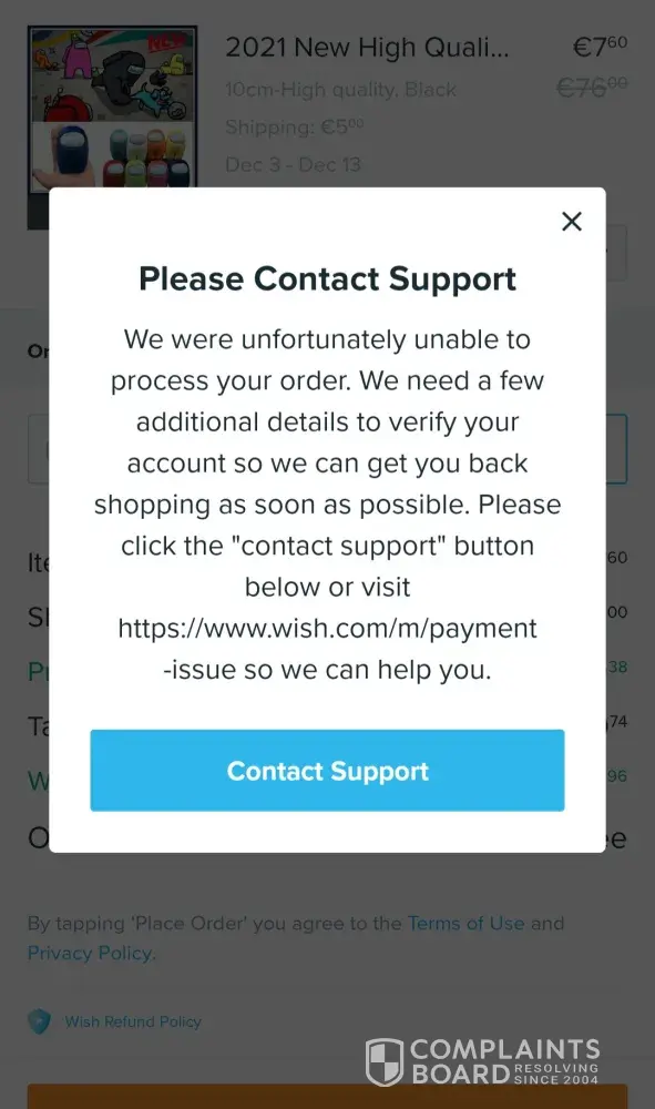 Before this, I received a message asking me to send my photo ID and photo of my debit card. I have sent it several times but did not receive any response/message appeared Lately, the abovementioned -"There is something wrong with your user account. Please visit https://www.wish.com/payment-issue to resolve this."