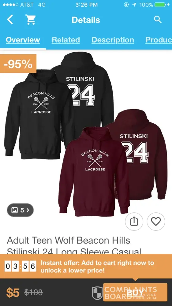 I ordered the maroon red stilinski hoodie and when I went to check out payment price was 10. Once I clicked order you had the same hoodie available for $5. I have a screen shot of this included as well. I talked with a friend and she said you honor pricing. Please let me know if you will honor this transaction please. Sincere appreciation. I'm ok with a credit to my account if needed also.