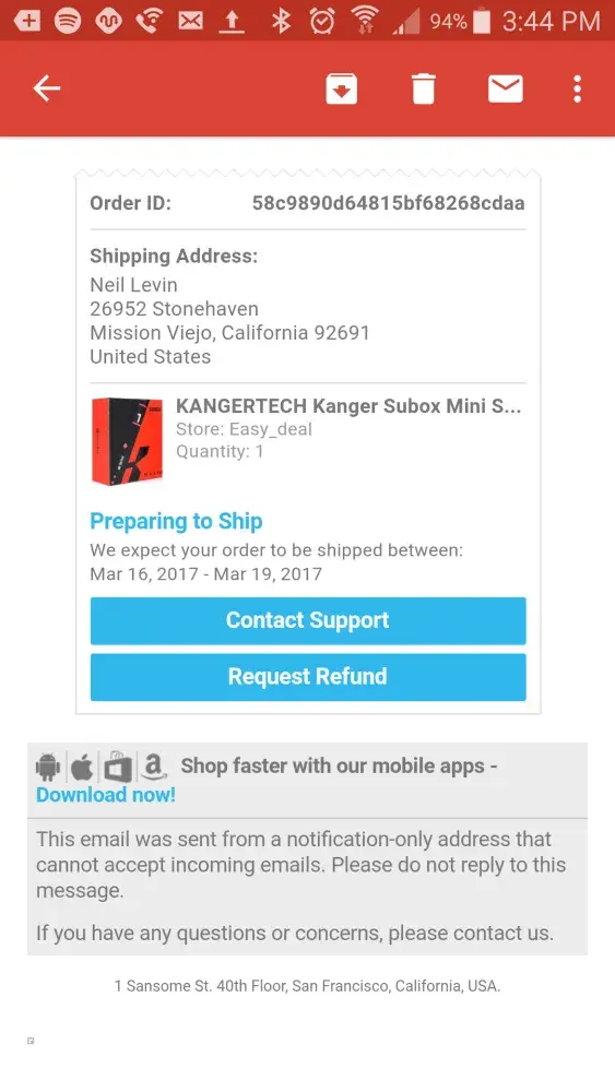 MAny orders have been place thru my account and because of the delay i request a refund for eveerything.